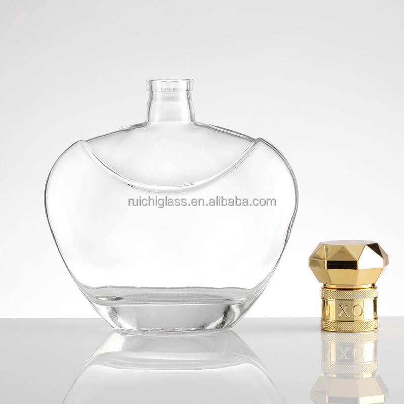 China fabrica transparente de forma cuadrada 700ml 750ml muestra de botella de licor 100ml tapa de oro