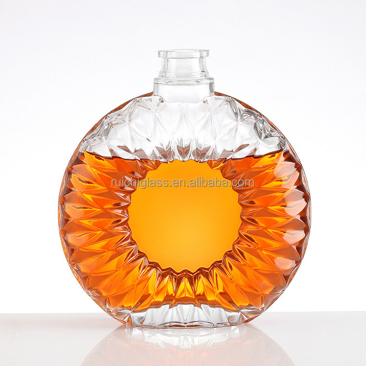Diseño de moda botellas de vidrio de brandy en relieve botellas de vidrio de whisky de lujo